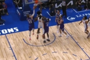 很生气!东契奇抢断上篮被犯规&裁判响哨子很晚 东契奇挥手投诉