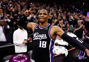 GIF-蒙克上篮 威少与场边球迷庆祝
