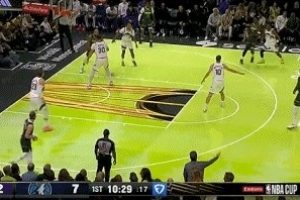 解说:当比尔上场时 快船的防守基本上就相当于多了1道自动感应门