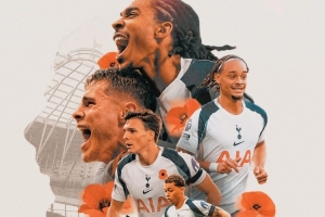 热刺官方社媒晒出对阵曼联的赛前海报,哈维-西蒙斯、帕利尼亚等球员出镜。