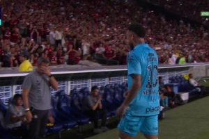 巴甲第33轮,桑托斯2-3不敌弗拉门戈,内马尔本场比赛首发出战85分钟被换下,他在换下场时有些不满,嘴里念念有词。