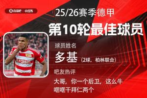 第十轮评选结果结出炉,柏林联合中卫多基梅开二度,帮助球队2-2战平拜仁,终结后者开局16连胜纪录,当选【体育资讯X小红书德甲第10轮最佳球员】!