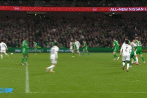 在裁判查看VAR之前,C罗比了一个哭泣动作,在他直红离场时看台上的爱尔兰球迷也集体做出这一手势回击。