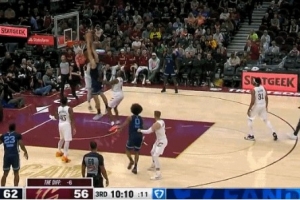 形似艾弗森!曼恩右侧弧顶处回拉撤步干拔三分命中