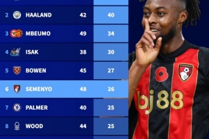 体育资讯11月18日讯 德国转会市场统计了上赛季至今球员在英超参与进球的数量,并列出榜单,萨拉赫53球居首,哈兰德40球次席,姆伯莫34球第三。