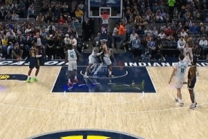 就差一点点!拉文后场超远折叠压哨三分打板命中 可惜先超时