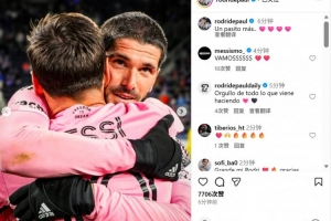 本场比赛梅西贡献1球3助攻,德保罗也在社媒晒出与梅西拥抱合影,配文:“再进一步🩷🩷🩷🩷”