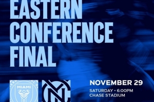 体育资讯11月24日讯 美职联季后赛东区半决赛,纽约城1-0击败费城联合,晋级东区决赛,将对阵迈阿密国际。