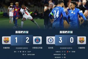 体育资讯11月26日讯 今日凌晨的欧冠,巴萨0-3不敌切尔西,欧冠战绩来到2胜1平2负。