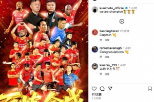 赛后辽足日本外援邦本宜裕更新社媒,晒出了球队夺冠的海报,并配文写道:“我们是冠军!”