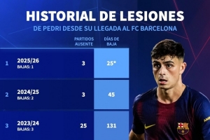 体育资讯10月30日讯 巴萨中场佩德里左侧大腿远端股二头肌撕裂,德国转会市场更新社媒动态,盘点佩德里加盟巴萨以来每个赛季的伤病情况。