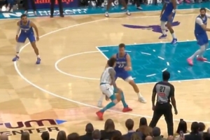 不得不出手!约基奇弧顶空位超远三分 迎着克林根扔进!