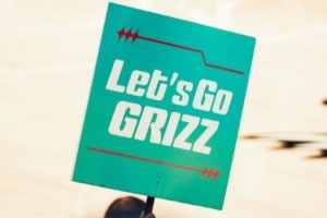 牌子上面写着:加油冲!灰熊!