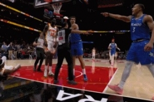 GIF-贝恩拉人犯规后拿球砸人 还手指对方球员